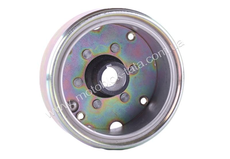 Магнето генератора TT AGRO MOTO (під 6 котушок) на бензиновий двигун 125/150CC є ключовим компонентом системи електропостачання, який відповідає за перетворення механічної енергії обертання в електричний струм. Сфера застосування цієї деталі охоплює популярні моделі мотоциклів, скутерів та квадроциклів з об’ємом двигуна 125 та 150 кубічних сантиметрів, оснащених відповідним статором. Головні переваги використання цього магнето полягають у високій точності балансування ротора, що мінімізує паразитні вібрації під час роботи на високих оборотах. Зовнішній діаметр виробу становить 110 мм, забезпечуючи оптимальну інерцію підтримки стабільного ритму обертання колінчастого валу. Внутрішній діаметр 85 мм гарантує прецизійну посадку на частину у відповідь, виключаючи зсув магнітного поля щодо обмоток. Завдяки ширині 40 мм, деталь формує потужний магнітний потік, достатній для живлення освітлювальних приладів та заряджання акумулятора. Важливість своєчасної заміни зношеного магнето продиктована необхідністю запобігти падінню напруги в бортовій мережі, оскільки ослаблення магнітів або механічні пошкодження ведуть до нестабільного іскроутворення та відмови електроніки. Установка нового ротора від TT AGRO MOTO блокує ризик перебоїв у роботі двигуна та гарантує номінальну потужність іскри. Якісне антикорозійне покриття захищає деталь від агресивної дії довкілля, продовжуючи загальний ресурс електроустаткування. Використання сертифікованих запчастин дозволяє підтримувати розрахункові параметри генерації енергії у будь-яких експлуатаційних режимах.