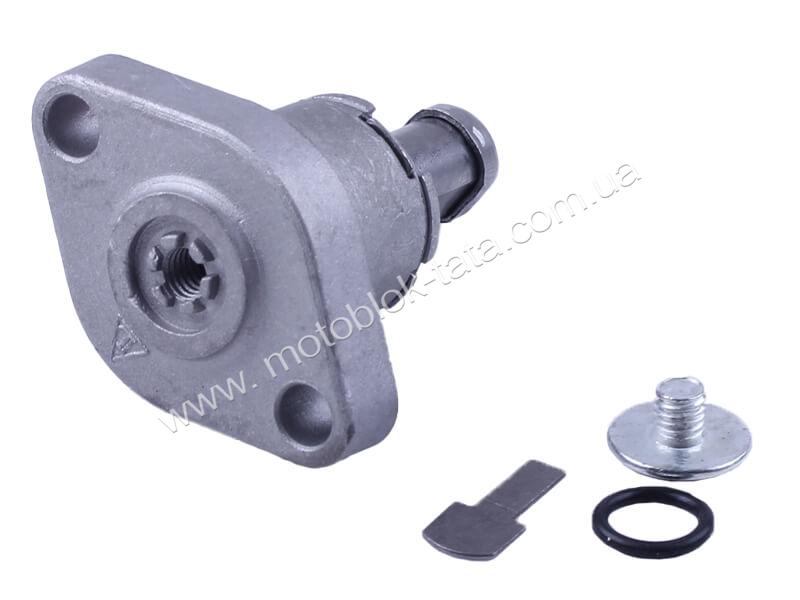 Натягувач встановлюється на корпус двигуна і автоматично компенсує розтяг ланцюга, яке може виникати в процесі експлуатації. Він підтримує стабільний тиск на напрямну ланцюга, забезпечуючи правильну роботу газорозподільного механізму. Це допомагає уникнути перескакування ланцюга по зубцях зірочок та зберігає синхронність роботи всіх елементів двигуна.