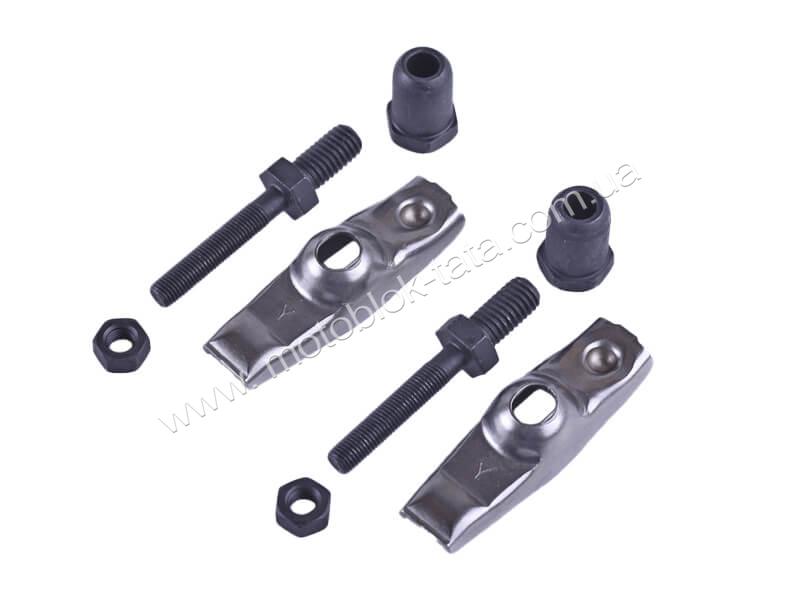 Коромисла комплект (шпильки, гайки, гвинти) на 2 кл. – 177F підходять на бензинові двигуни мотоблоків, генераторів та ін, потужністю 9 л.с. з повітряним охолодженням. Комплектація на 2а клапани: коромисла, шпильки, гайки, гвинти.