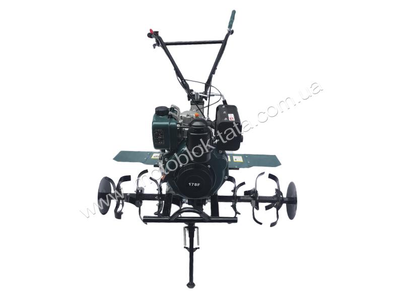 Мотоблок дизельний MB-1100A-ZX TΛTΛ (редукторний), двигун 178F (6 к.с.), GREEN призначений для обробки невеликих земельних ділянок. У мотоблоці встановлений двигун 178F із потужністю 6 л.с. Це надійна функціональна техніка, яка має безліч позитивних характеристик. Використання мотоблоку дизельного МВ-1100А-ZX має низку переваг: – мотоблок MB-1100A-ZX TΛTΛ оснащений потужним двигуном та надійною системою охолодження, які дозволяють використовувати техніку для довготривалої безперебійної роботи;