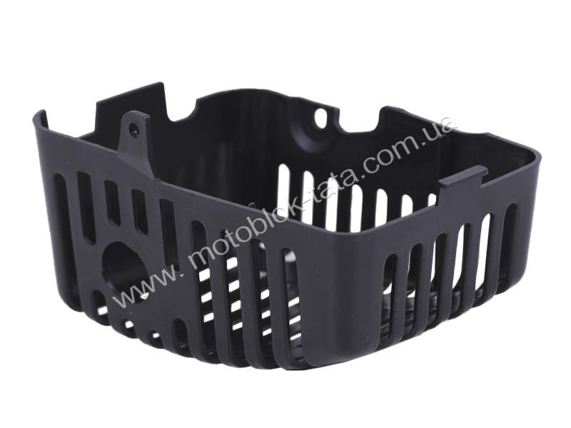 Деталь изготовлена из прочного пластика, который устойчив к нагреву, вибрациям и воздействию внешней среды. Материал не боится влаги, пыли и мелких механических воздействий, поэтому хорошо подходит для условий, в которых обычно используется бензиновая мотокоса. Конструкция защиты обеспечивает свободную циркуляцию воздуха вокруг глушителя, благодаря чему двигатель не перегревается во время работы.